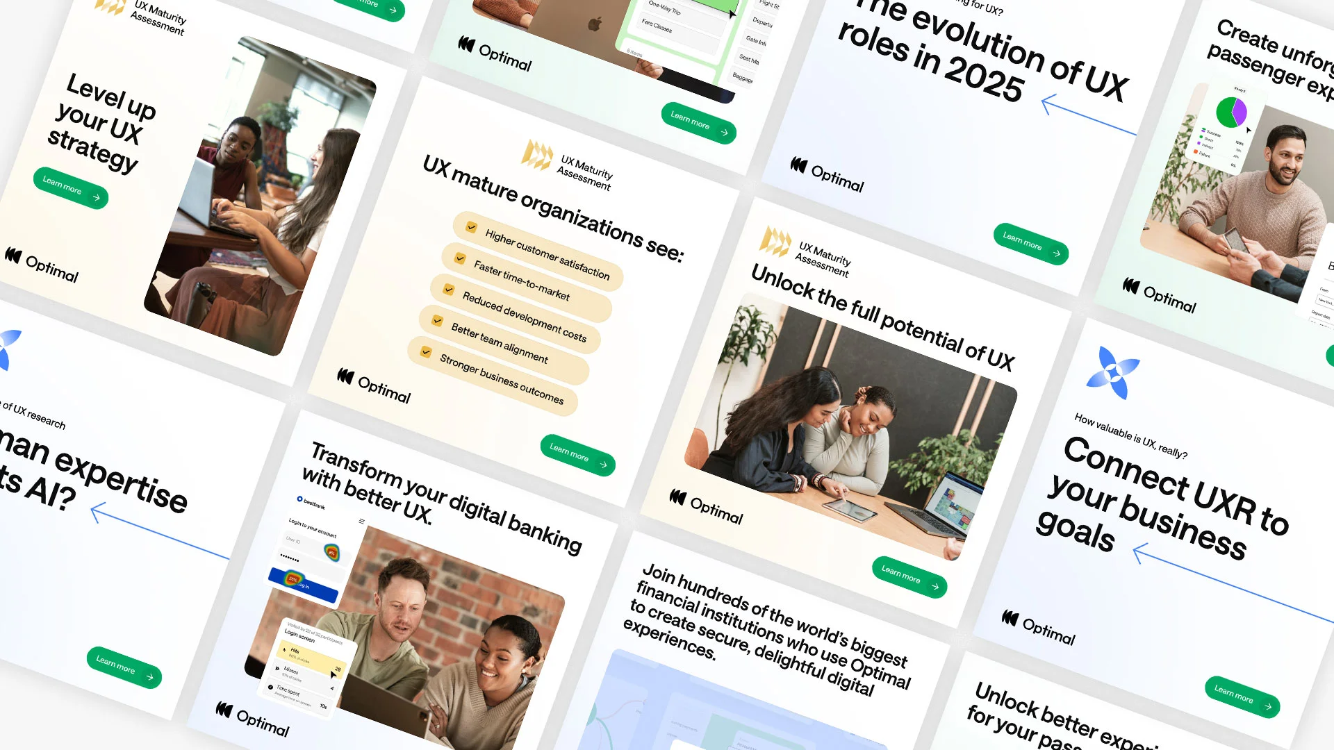 Vivid Studio leads the ongoing brand and digital design for Optimal Workshop, a world-leading UX research platform. The studio handles everything from marketing design and campaign creative to Webflow development -- keeping every touchpoint cohesive, on-brand, and aligned with the product's forward-thinking identity.
